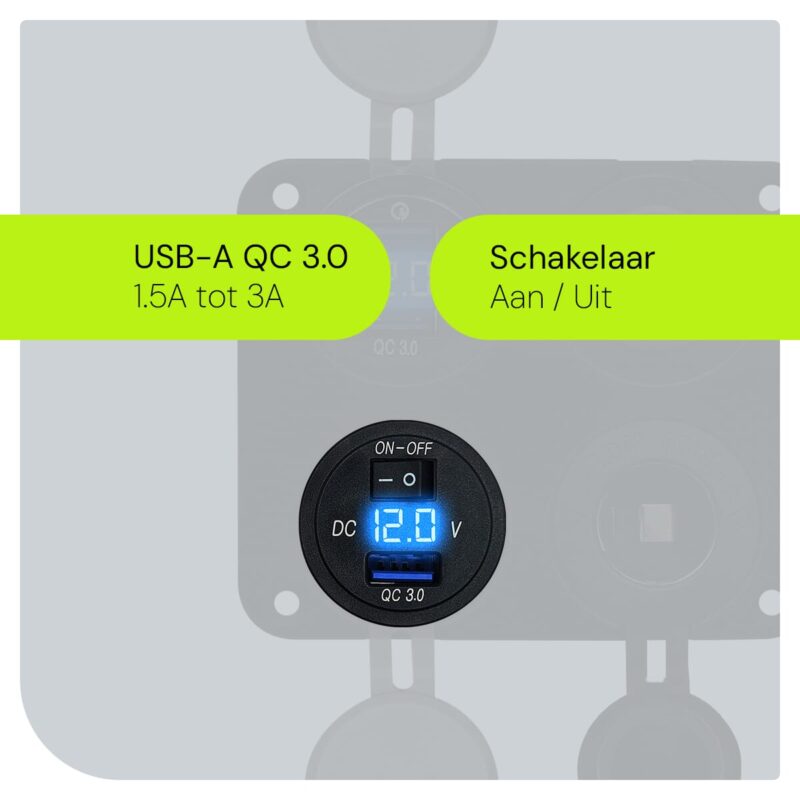 Dankzij de ingebouwde schakelaar kun je eenvoudig de stroomtoevoer in- en uitschakelen. Dit helpt niet alleen om energie te besparen, maar voorkomt ook dat je accu leegloopt wanneer de lader niet in gebruik is.