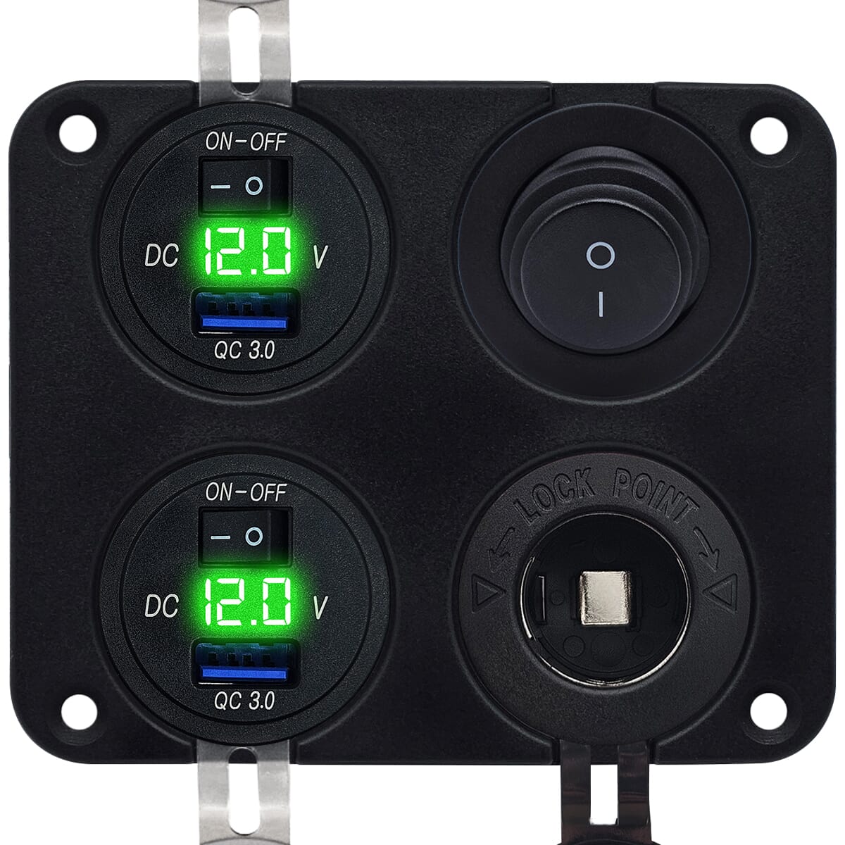 - Meerdere aansluitingen: Laad tot vier apparaten tegelijk op met de dubbele USB-poorten en het 12V sigaretten stopcontact.