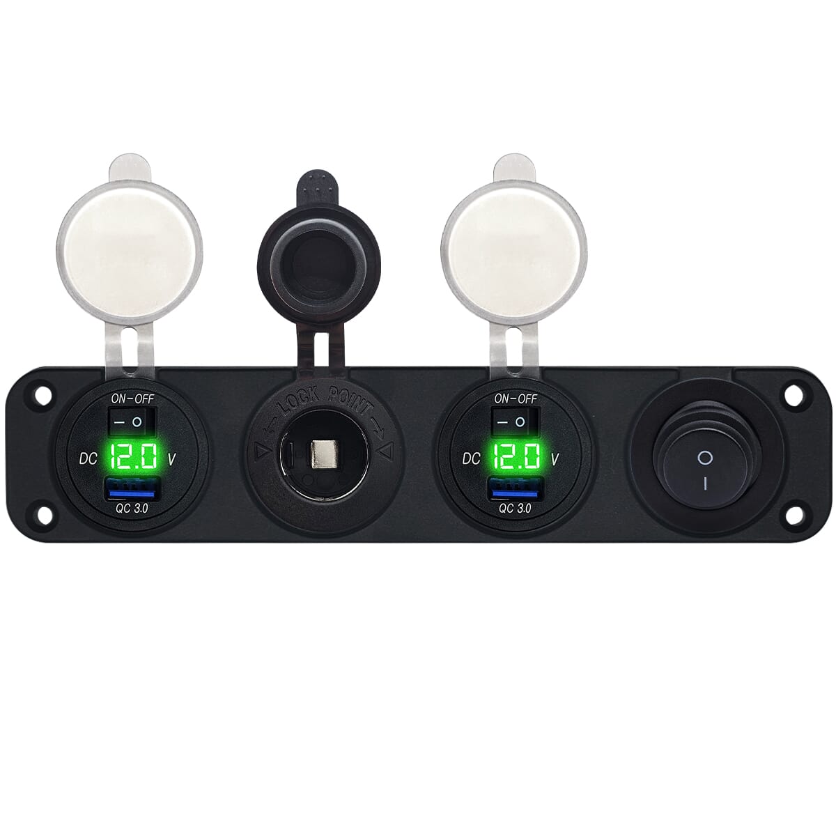 ProRide 12V USB Autolader 2 Poort – 5V/2.4A – Schakelaar en 12V Sigaretten stopcontact – Viervoudig inbouw
