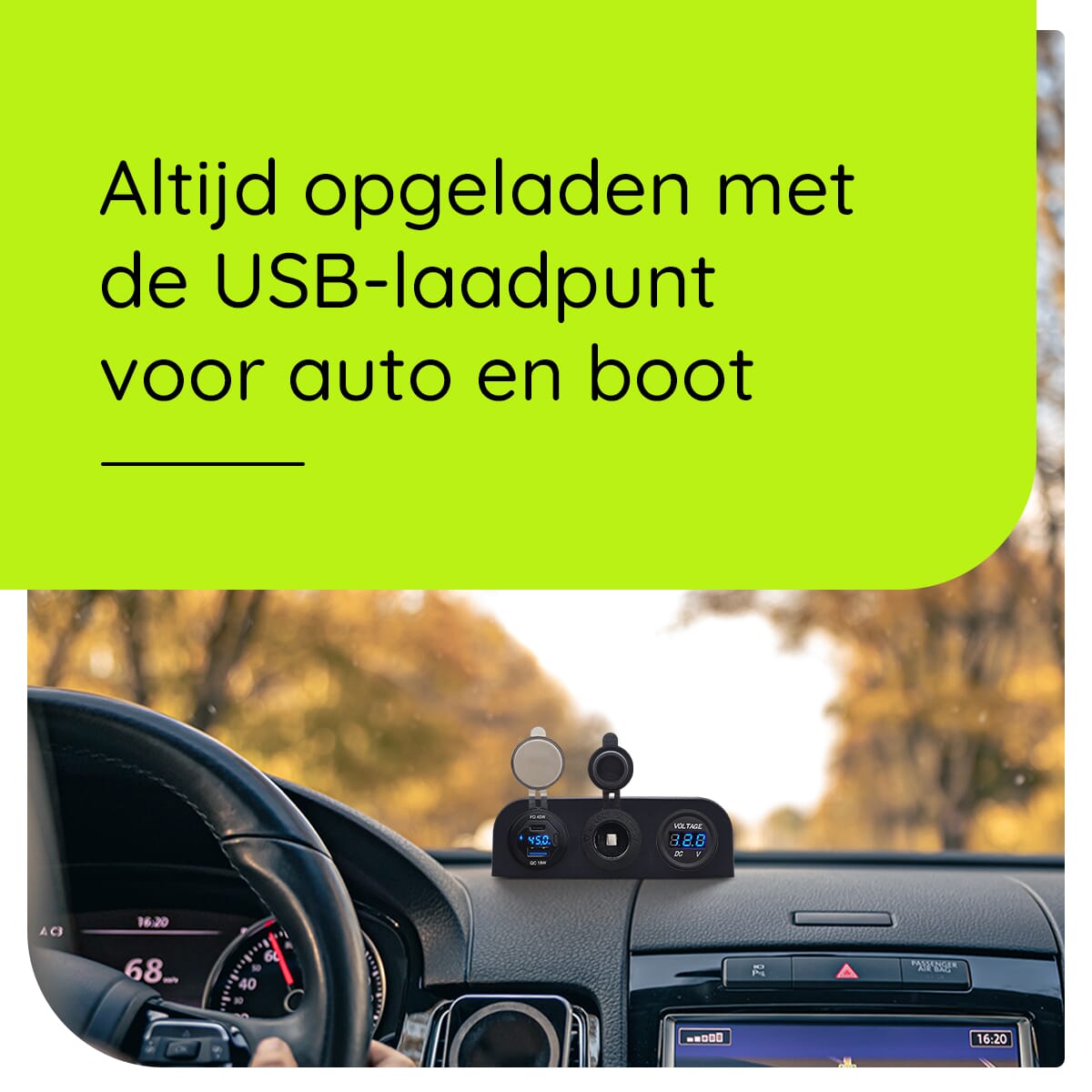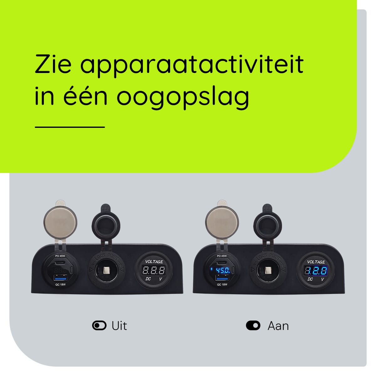 - Real-time Voltage Monitoring: De voltmeter biedt directe feedback over de status van je voertuigaccu, essentieel voor het onderhouden van elektrische gezondheid tijdens lange ritten.