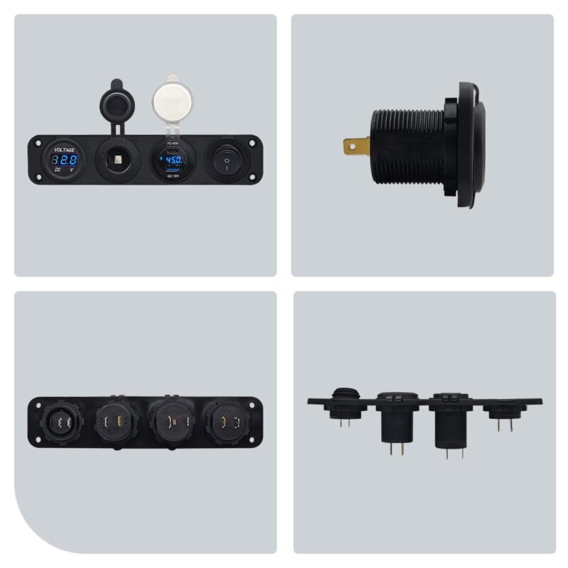 ProRide® 12V USB Stopcontact 2 Poorten – 45W/QC3.0 – Voltmeter, Schakelaar en 12V/24V Sigarettenplug – Viervoudig Inbouw