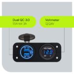 Het blauwe tweevoudige inbouw paneel van de ProRide 12V USB Autolader is niet alleen functioneel, maar ook een stijlvolle toevoeging aan je auto. Het paneel is ontworpen om naadloos in je dashboard te passen, waardoor het er strak en professioneel uitziet.