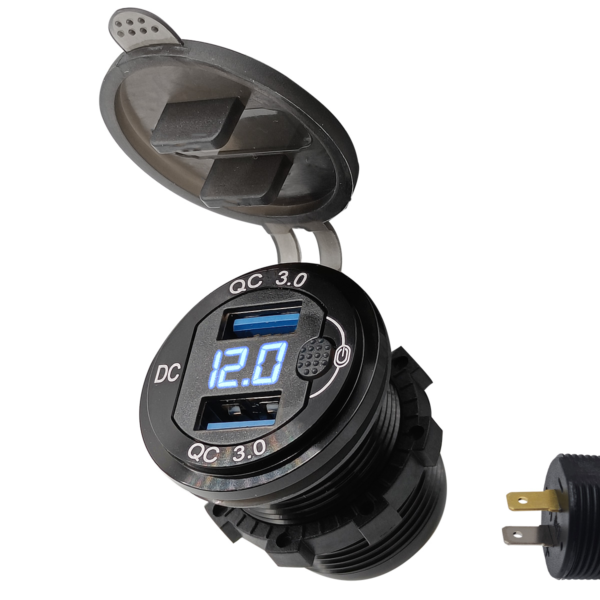 ProRide 12V USB Autolader 2 Poorten Inbouw met Schakelaar/Voltmeter – QC3.0 – DS2120B – USB Stopcontact Auto, Boot en Camper – Blauw