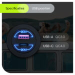 - Dubbele poorten: Laad twee apparaten tegelijkertijd op zonder in te leveren op snelheid of efficiëntie.