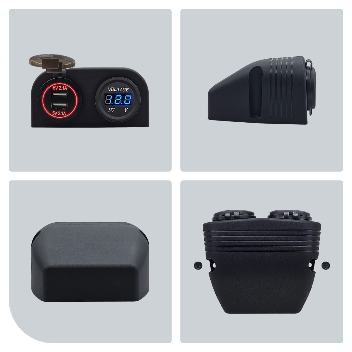 ProRide 12V USB Autolader 2 Poorten Opbouw – 5V/2.1A – Tweevoudig opbouw met Voltmeter – Rood