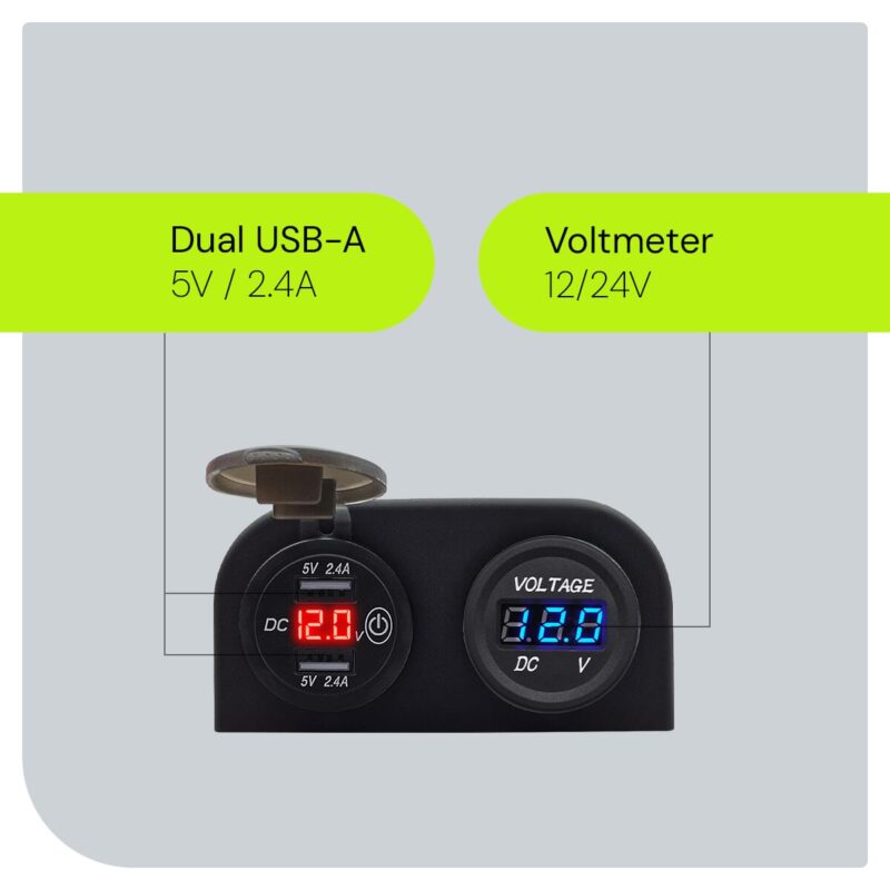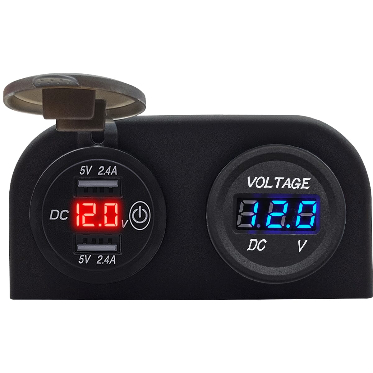 ProRide 12V USB Autolader 2 Poorten Opbouw met Schakelaar – 5V/2.4A – Tweevoudig opbouw met Voltmeter – Rood
