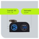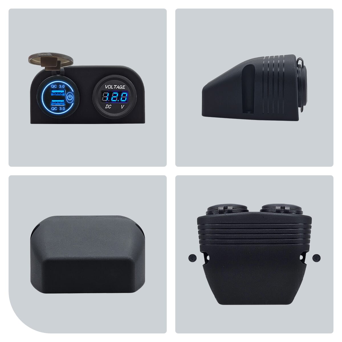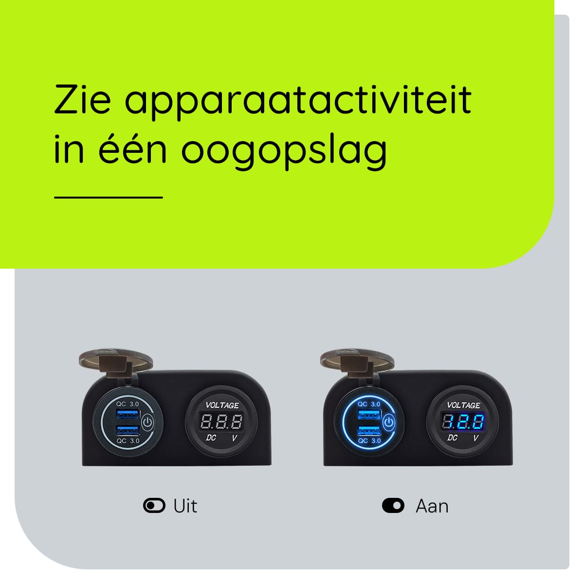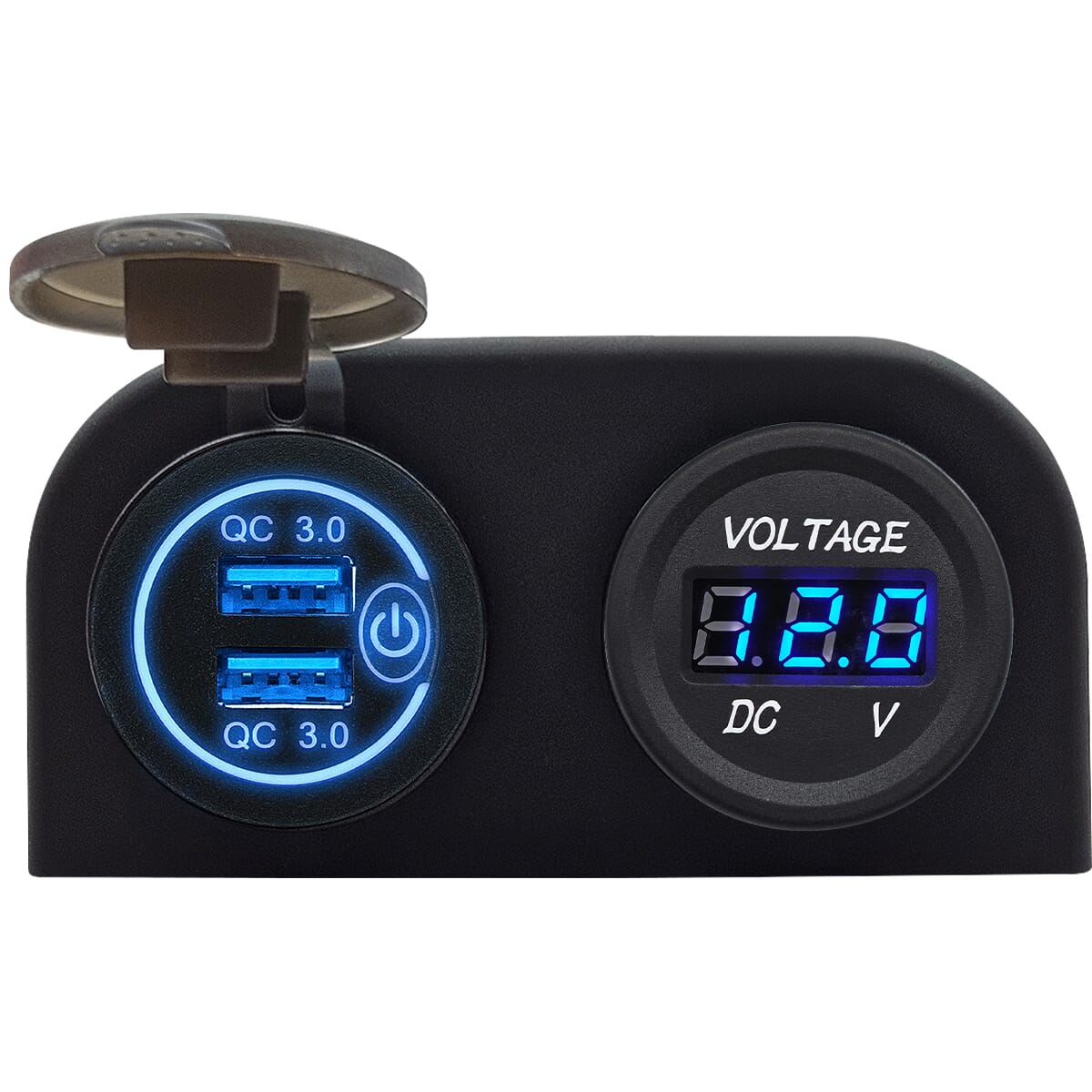 ProRide 12V USB Autolader 2 Poorten Opbouw met Schakelaar – QC3.0 – PUSB1QC-B – Tweevoudig opbouw met Voltmeter – Blauw