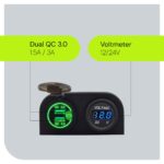 ProRide 12V USB Autolader 2 Poorten Opbouw met Schakelaar – QC3.0 – PUSB1QC-G – Tweevoudig opbouw met Voltmeter – Groen
