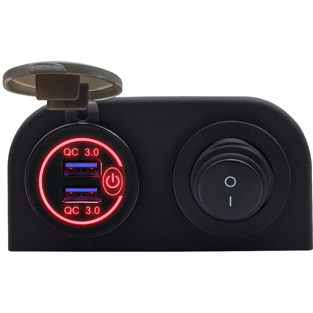 ProRide 12V USB Autolader 2 Poorten Opbouw met Schakelaar – QC3.0 – PUSB1QC-R – Tweevoudig opbouw – Rood