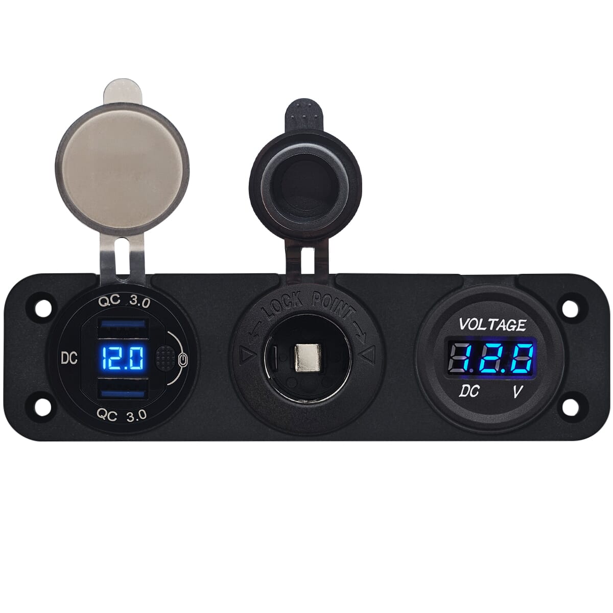 ProRide 12V USB Autolader 2 Poorten – QC3.0 – Voltmeter en 12V/24V Sigarettenplug – Drievoudig inbouw