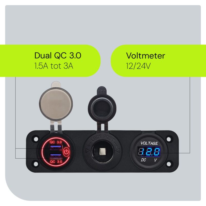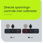 - Extra’s: Voltmeter en 12V/24V sigaretten stopcontact