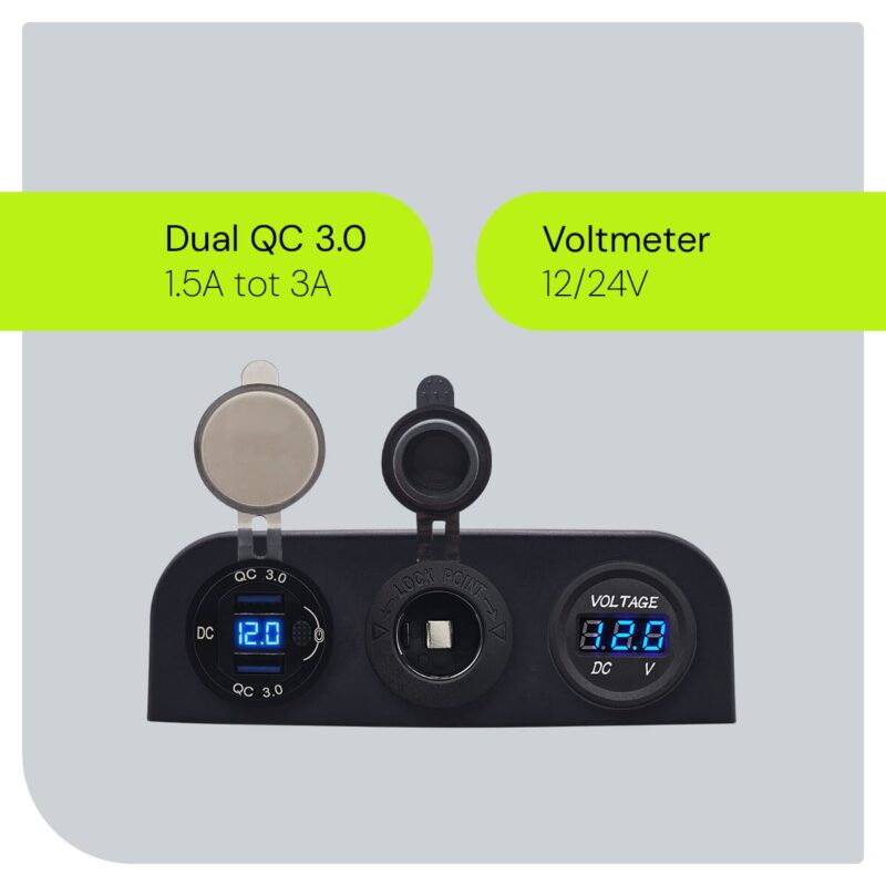 - Extra’s: Voltmeter en 12V/24V sigaretten stopcontact