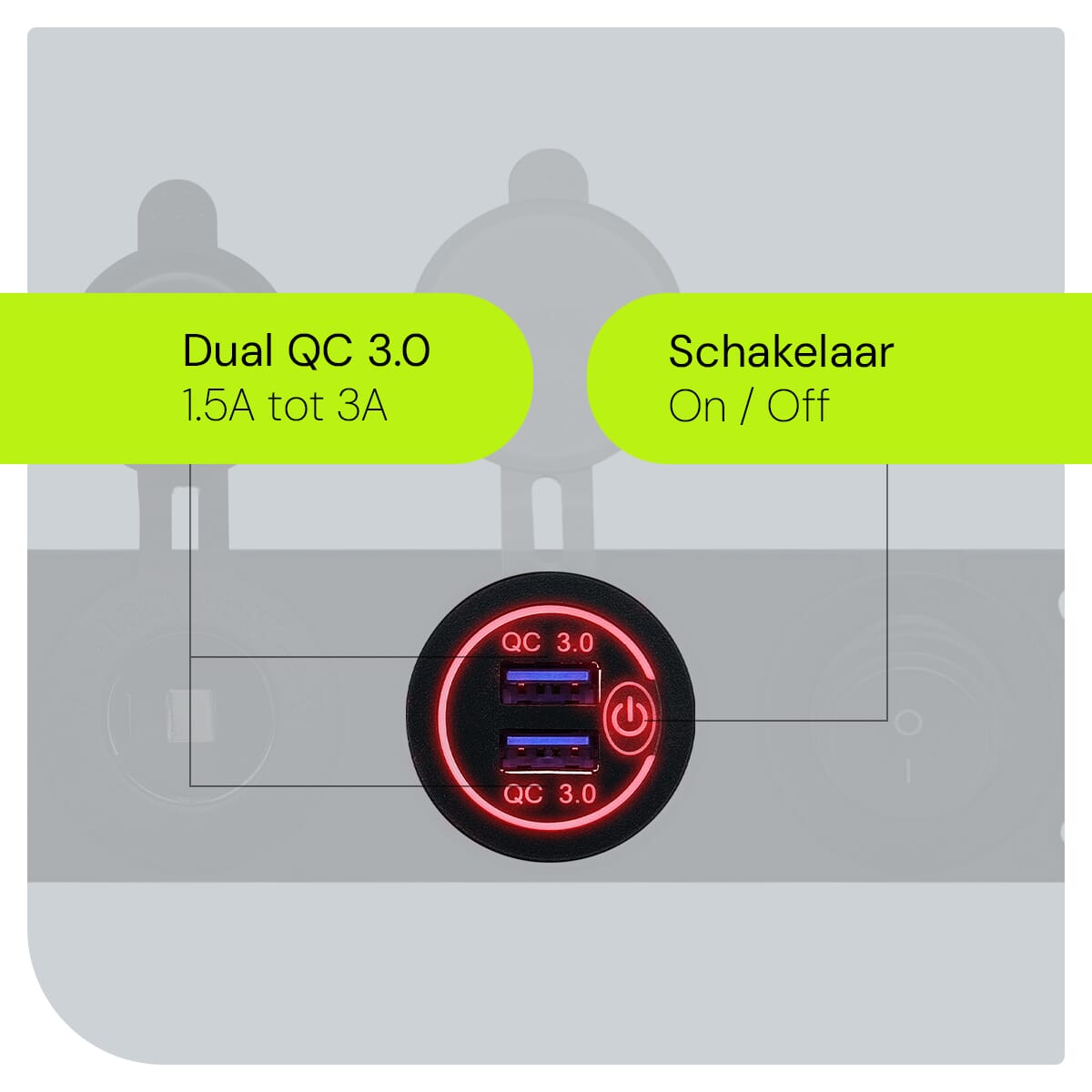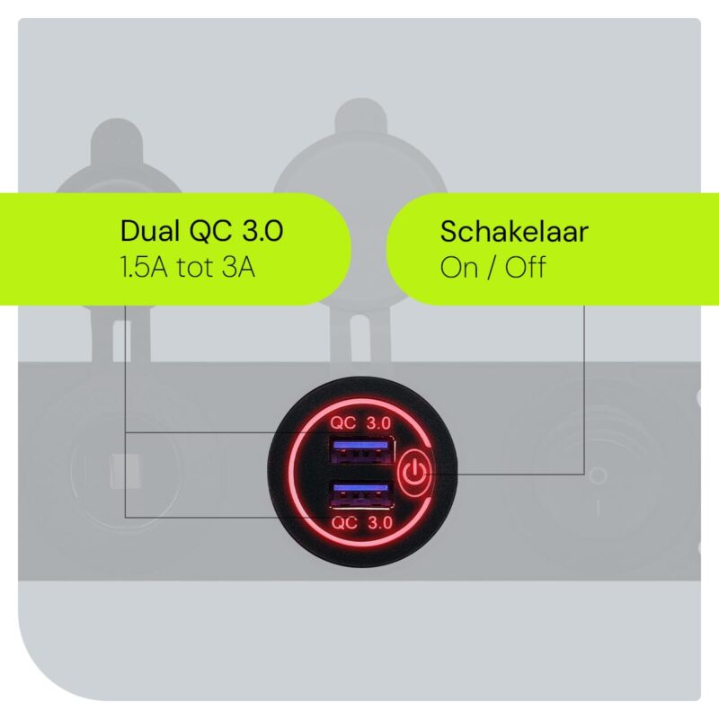 Upgrade je voertuig met het ProRide® 12V USB Stopcontact, ideaal voor auto’s, vrachtwagens, boten, caravans en campers. Dit moderne stopcontact is uitgerust met twee USB-laadpunten met Quick Charge 3.0 technologie, een handige schakelaar en een 12V/24V sigaretten stopcontact voor snelle en efficiënte energievoorziening.