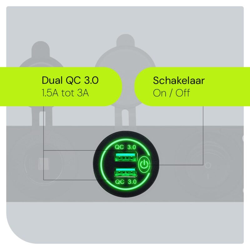 Upgrade je voertuig met het ProRide® 12V USB Stopcontact, ideaal voor auto’s, vrachtwagens, boten, caravans en campers. Dit moderne stopcontact is uitgerust met twee USB-laadpunten met Quick Charge 3.0 technologie, een handige schakelaar en een 12V/24V sigaretten stopcontact voor snelle en efficiënte energievoorziening.