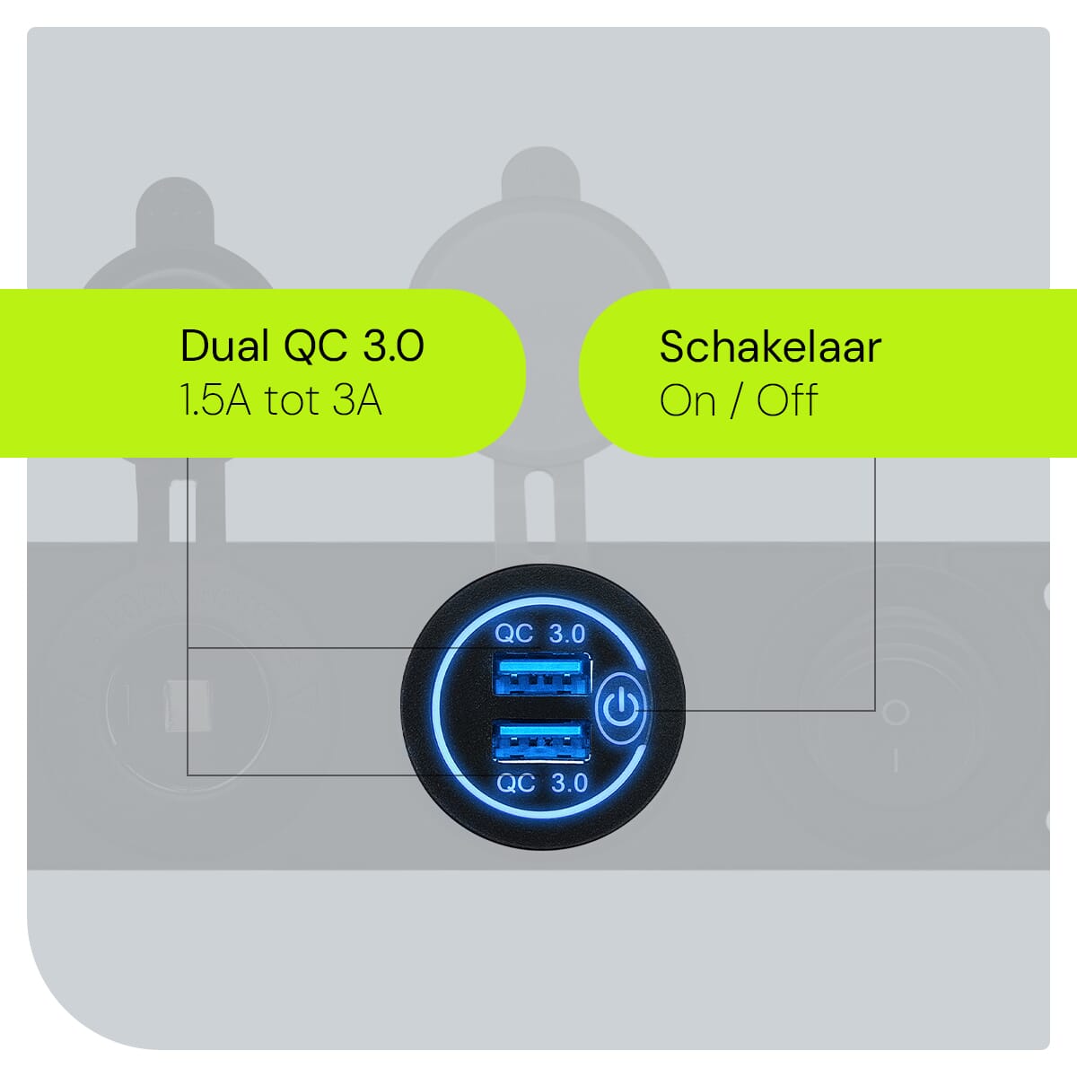Upgrade je voertuig met het ProRide® 12V USB Stopcontact, ideaal voor auto’s, vrachtwagens, boten, caravans en campers. Dit moderne stopcontact is uitgerust met twee USB-laadpunten met Quick Charge 3.0 technologie, een handige schakelaar en een 12V/24V sigaretten stopcontact voor snelle en efficiënte energievoorziening.