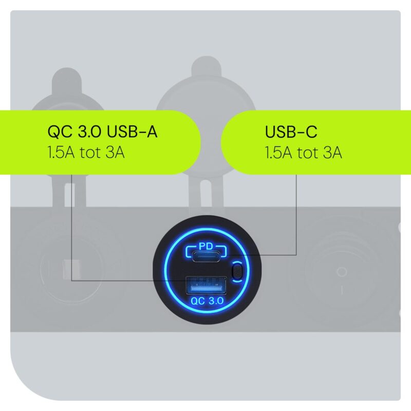 Upgrade je voertuig met het ProRide® 12V USB Stopcontact, ideaal voor auto’s, vrachtwagens, boten, caravans en campers. Dit moderne stopcontact is uitgerust met twee USB-laadpunten met Quick Charge 3.0 technologie, een handige schakelaar en een 12V/24V sigaretten stopcontact voor snelle en efficiënte energievoorziening.