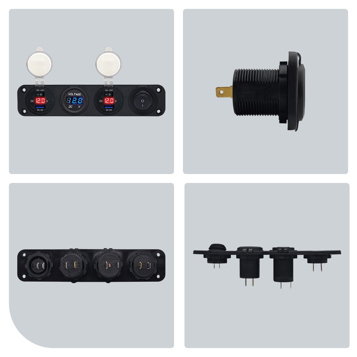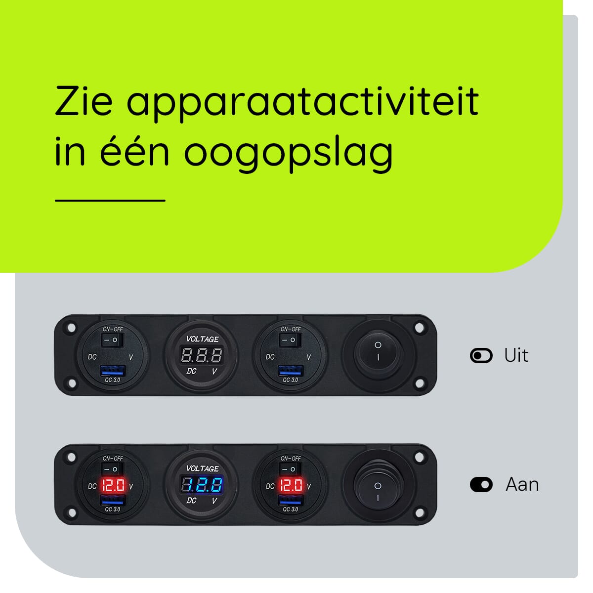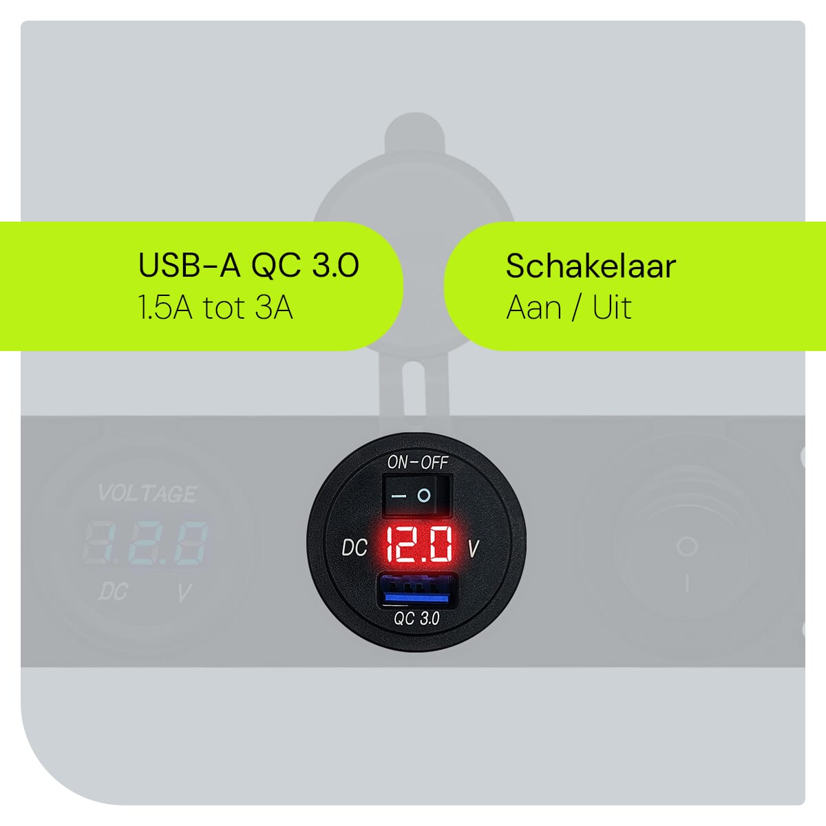 ProRide 12V USB Autolader 2 Poorten – Voltmeter en Schakelaar – Viervoudig inbouw