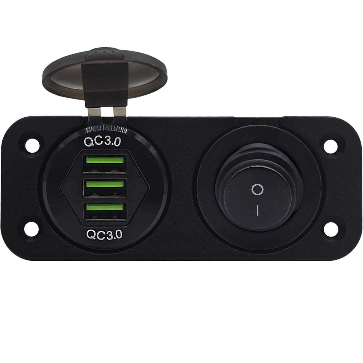ProRide 12V USB Autolader 3 Poorten Inbouw – QC3.0 – DS2085B – Tweevoudig inbouw paneel – Blauw