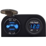 ProRide 12V USB Autolader 3 Poorten Opbouw met Schakelaar – QC3.0 – Tweevoudig opbouw met Voltmeter – Blauw