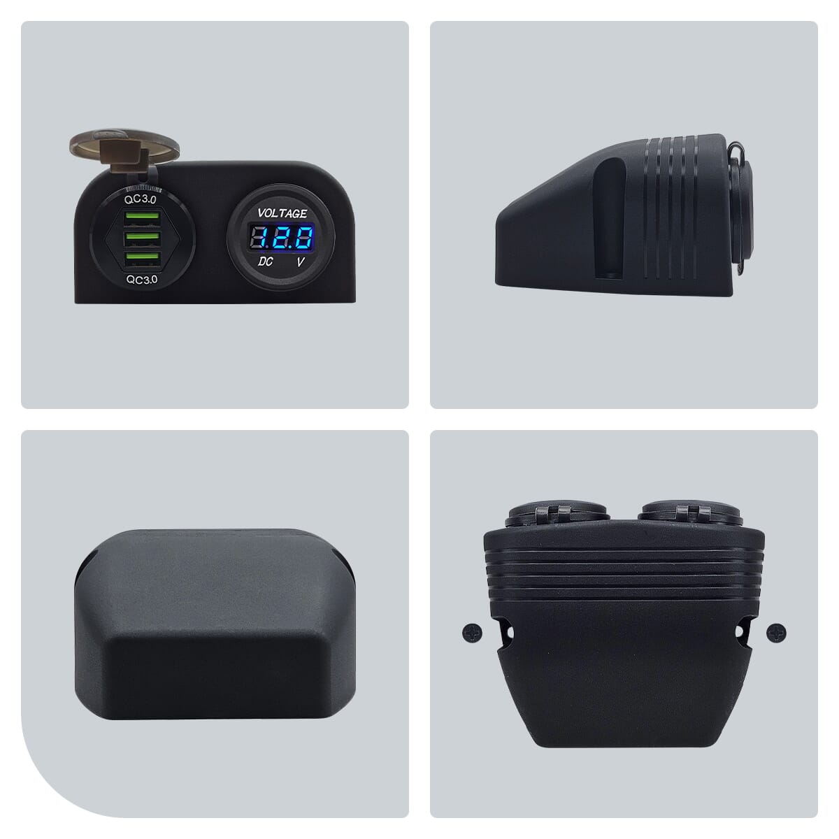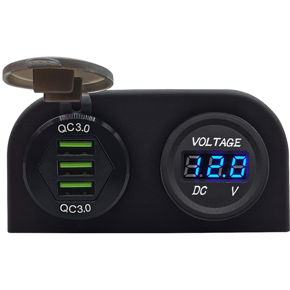 ProRide 12V USB Autolader 3 Poorten Opbouw – QC3.0 – DS2085B – Tweevoudig opbouw met Voltmeter – Blauw