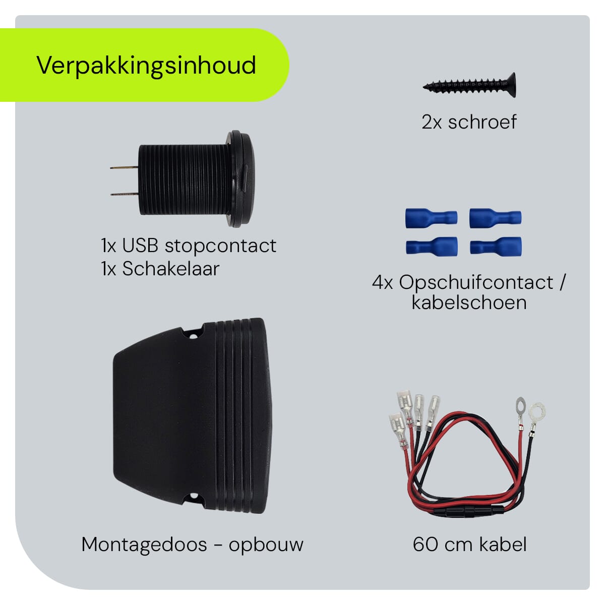 - Output: 3 USB-poorten (1x QC3.0, 2x 2.4A)