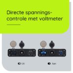 - Extra’s: Voltmeter en 12V/24V sigaretten stopcontact