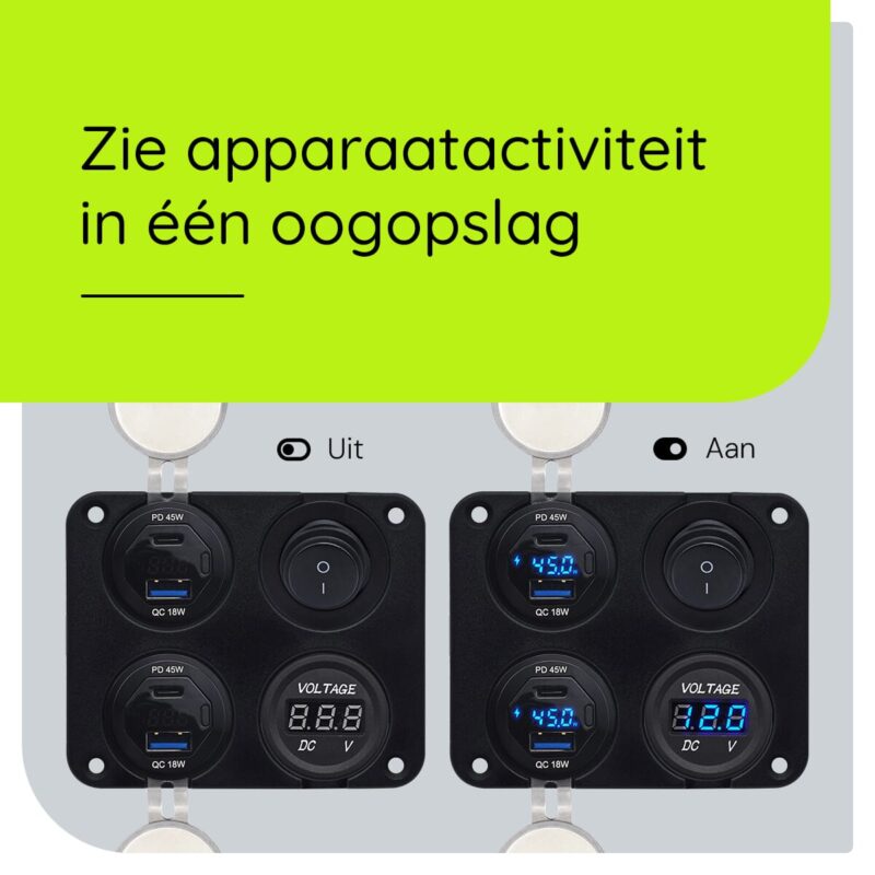- Veilig en betrouwbaar: De ingebouwde voltmeter en schakelaar zorgen voor een veilige en gecontroleerde oplaadervaring.