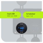 - Veilig en betrouwbaar: De ingebouwde voltmeter en schakelaar zorgen voor een veilige en gecontroleerde oplaadervaring.