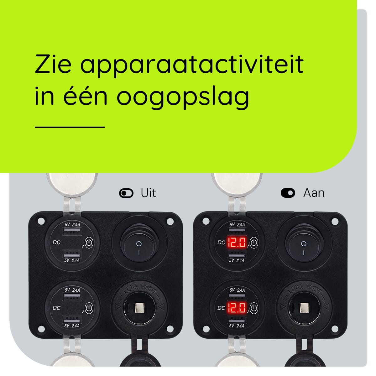 - Extra sigaretten stopcontact: Blijf je 12V sigaretten stopcontact gebruiken voor andere apparaten.