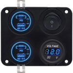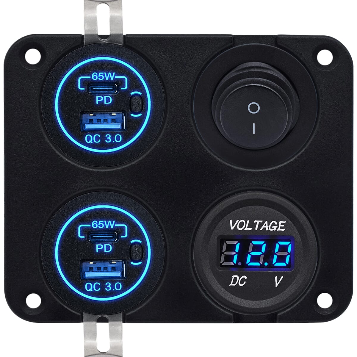 ProRide 12V USB Autolader 4 Poorten – 65W/QC3.0 – Voltmeter en Schakelaar – Vierkant inbouw