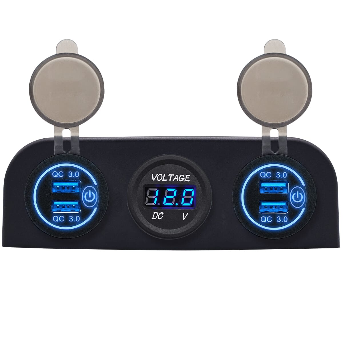ProRide 12V USB Autolader 4 Poorten – QC3.0 – P12523 – Drievoudig opbouw met Voltmeter