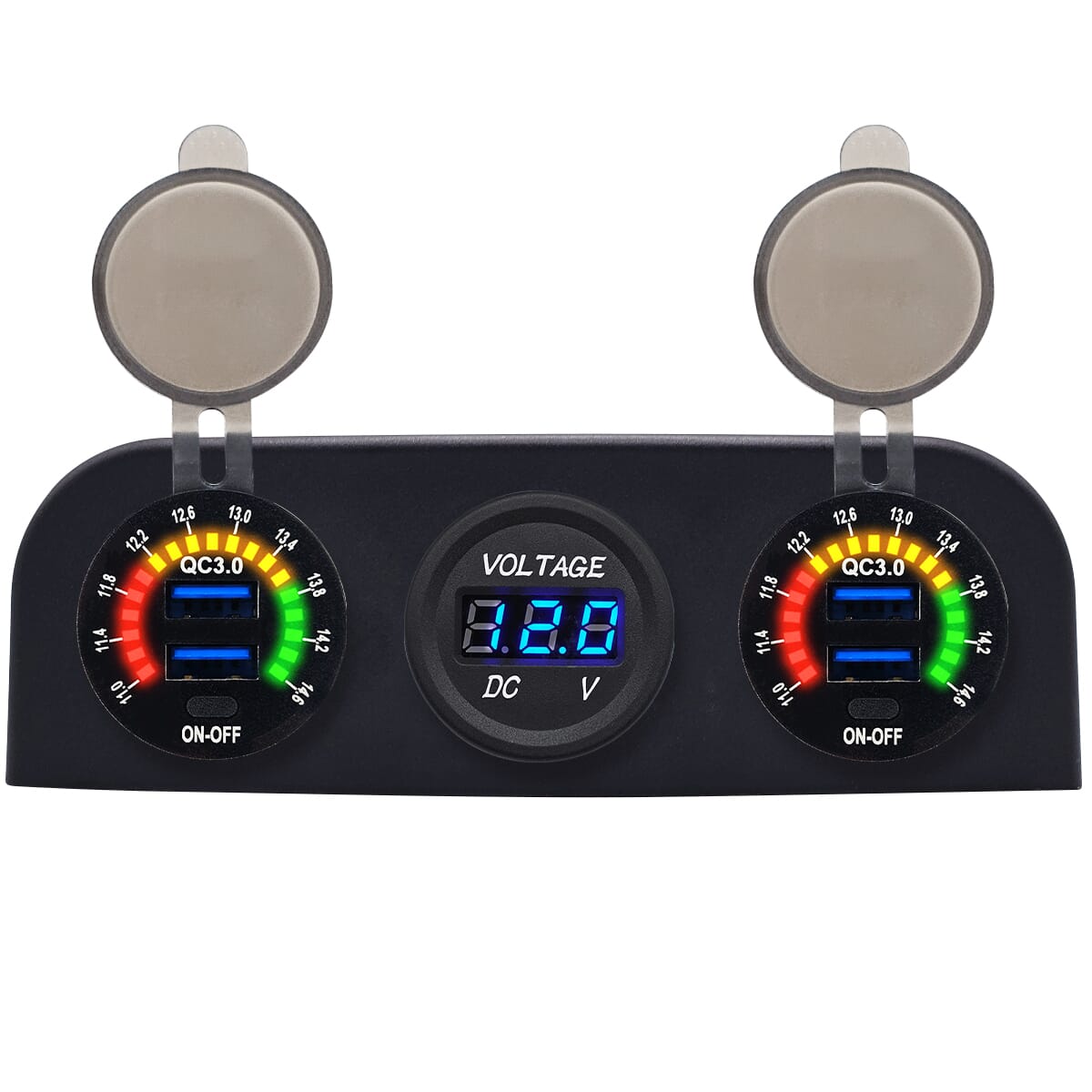 ProRide 12V USB Autolader 4 Poorten – QC3.0 – P19103 – Drievoudig opbouw met Voltmeter