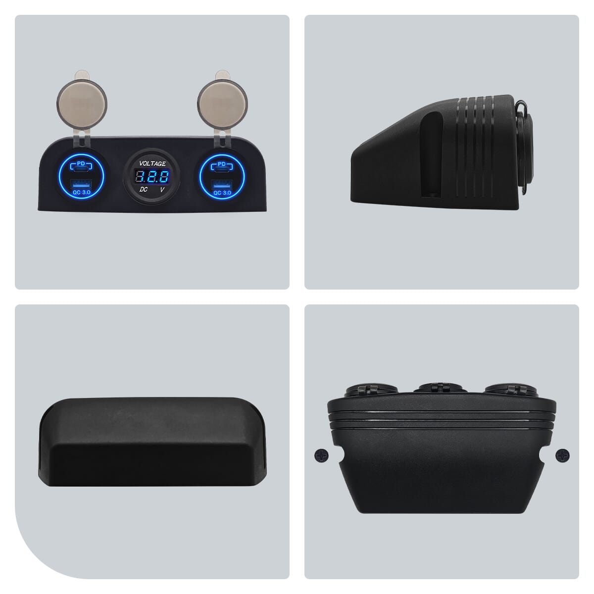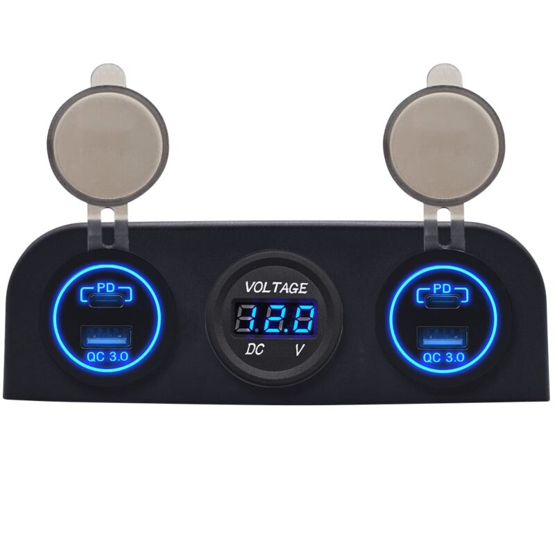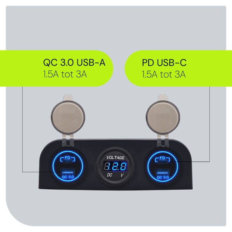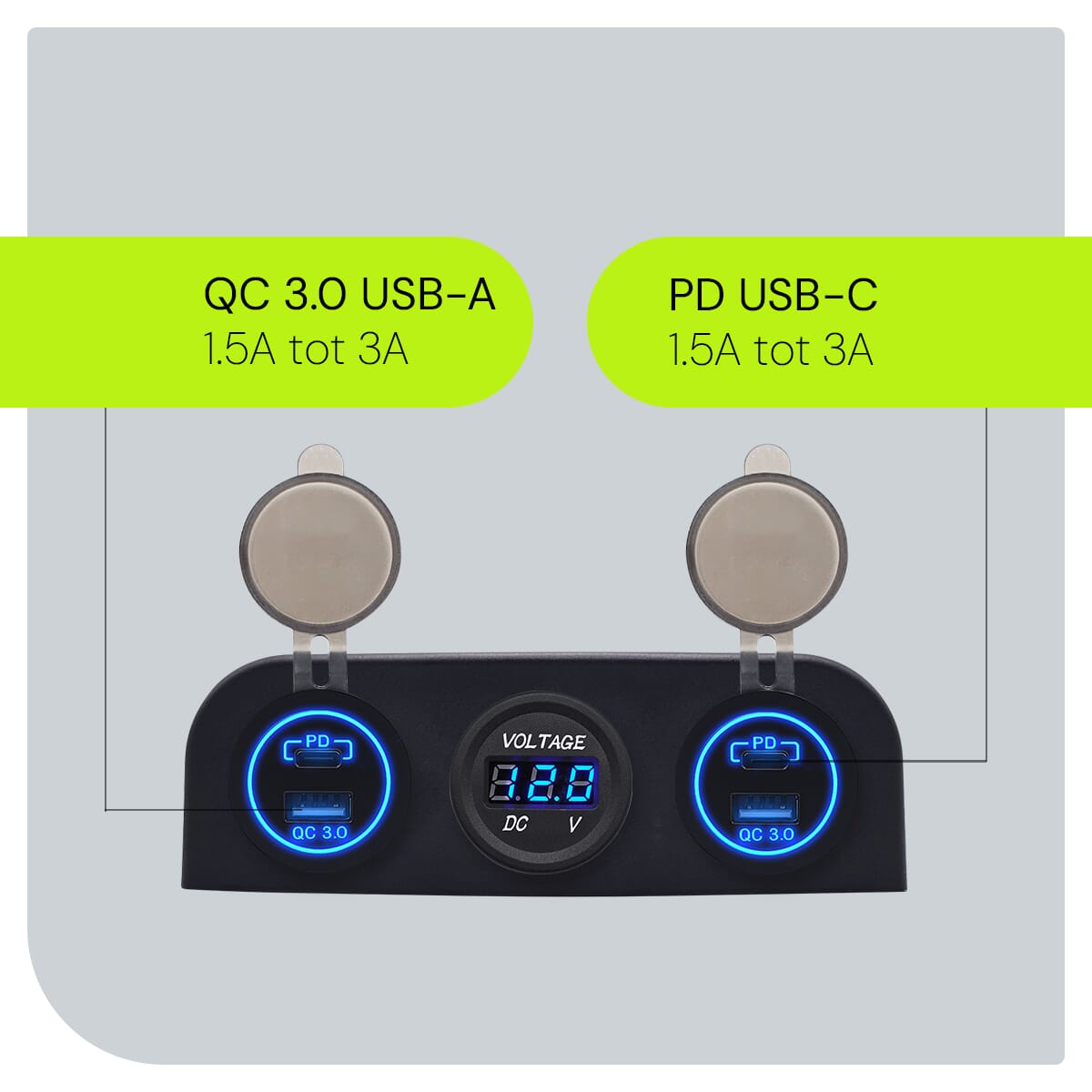 ProRide 12V USB Autolader 4 Poorten – QC3.0 – P19174 – Drievoudig opbouw met Voltmeter