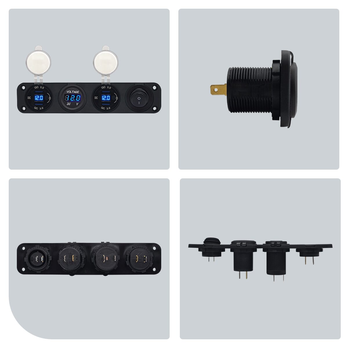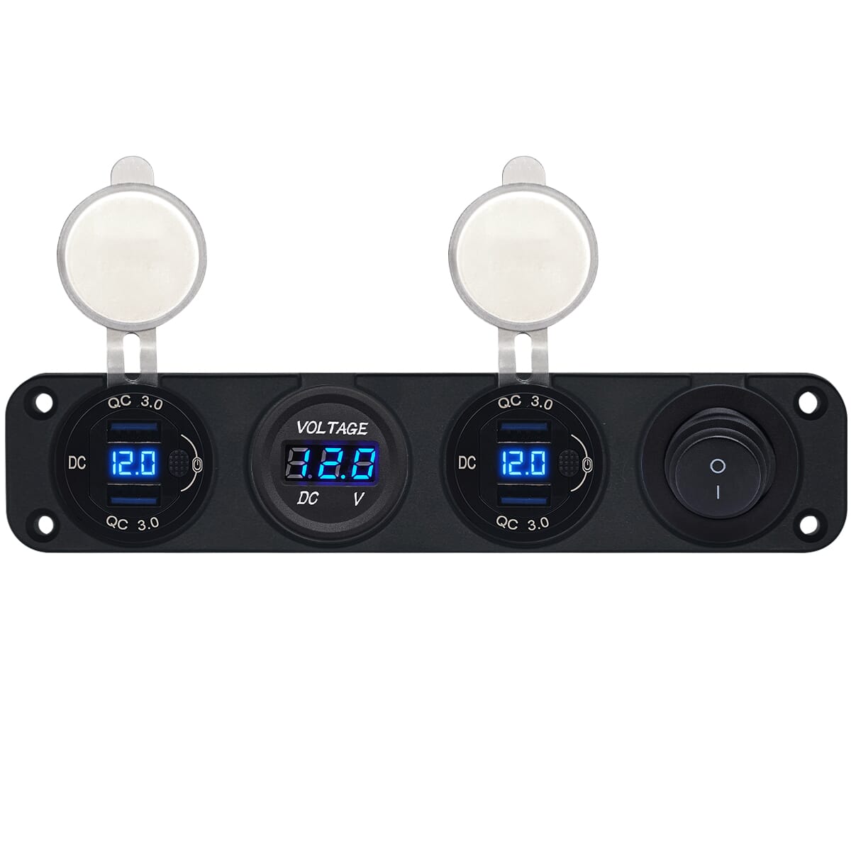 ProRide 12V USB Autolader 4 Poorten – QC3.0 – Voltmeter en Schakelaar – Viervoudig inbouw
