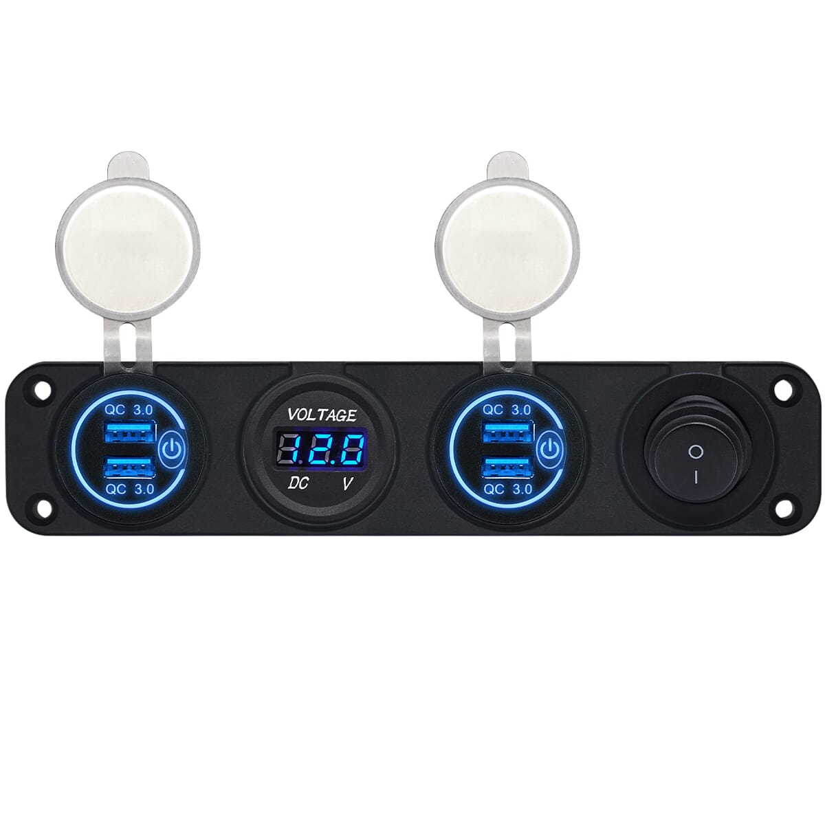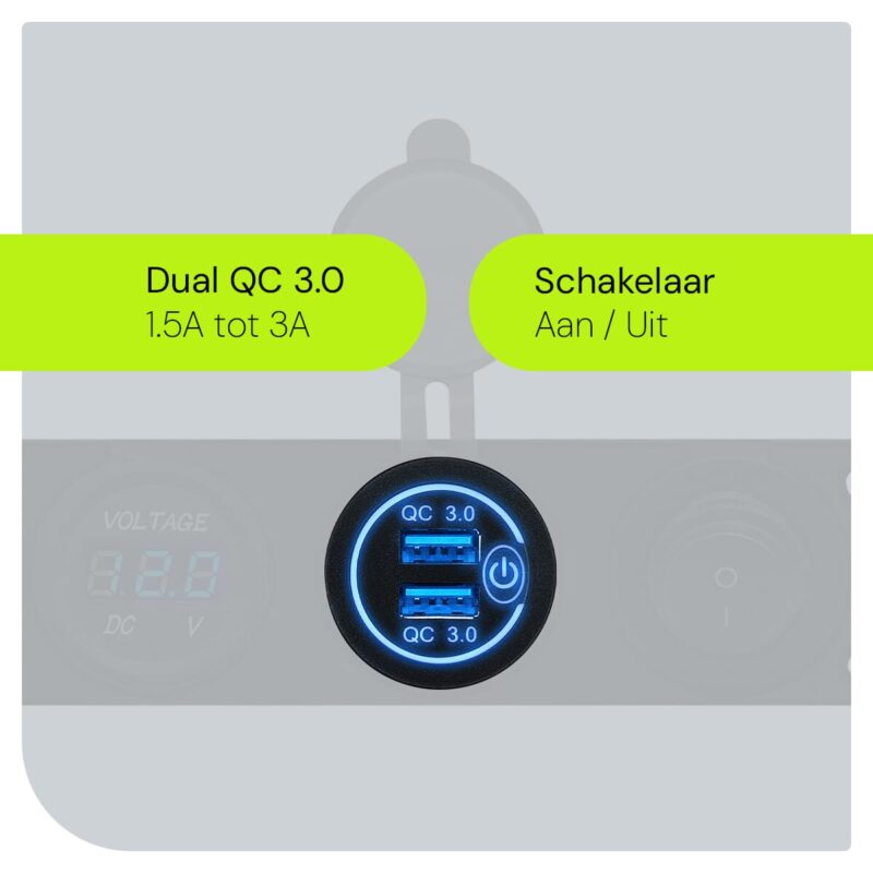 ProRide 12V USB Autolader 4 Poorten – QC3.0 – Voltmeter en Schakelaar – Viervoudig inbouw