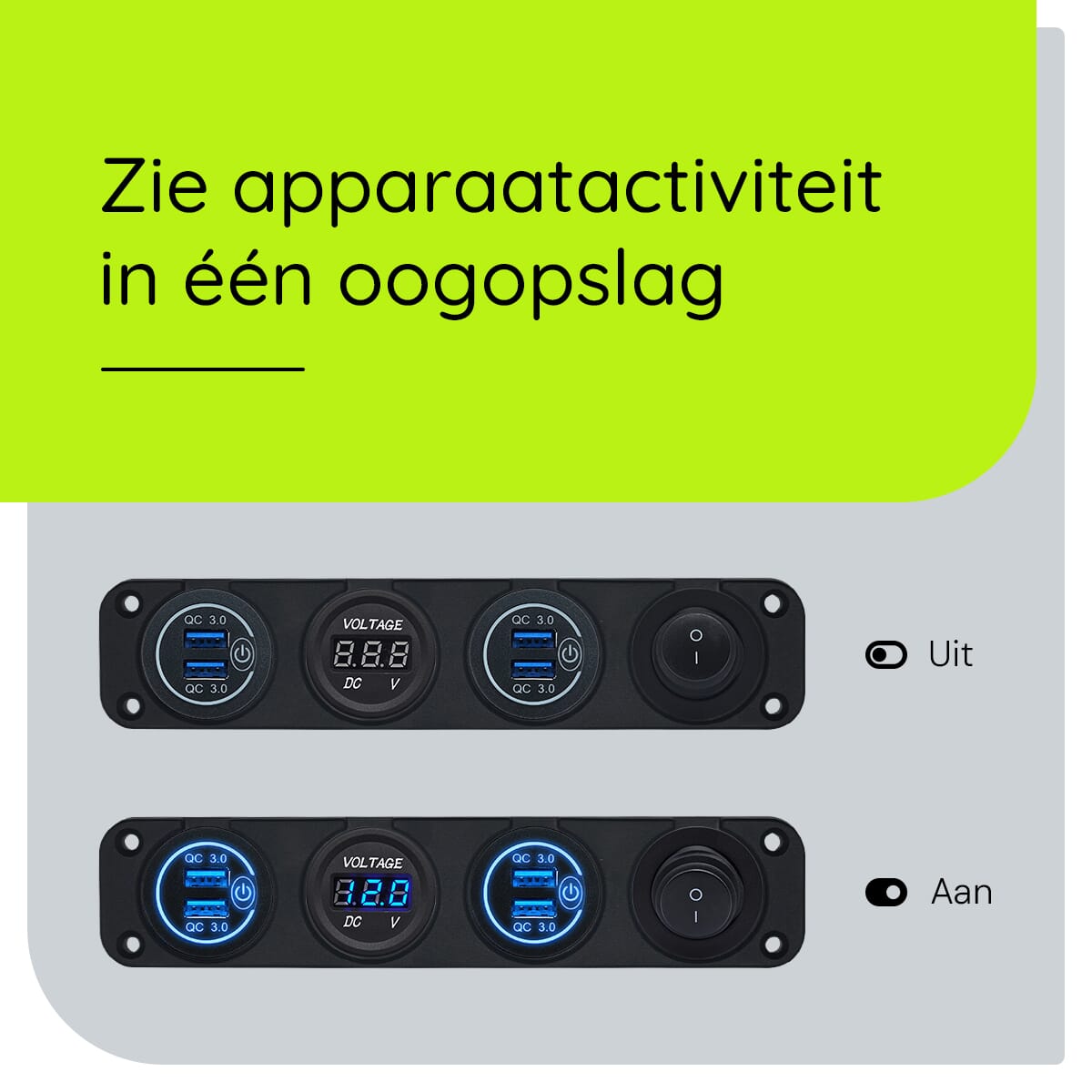 - Veiligheid: De ingebouwde voltmeter en schakelaar zorgen voor een veilige en gecontroleerde laadervaring.