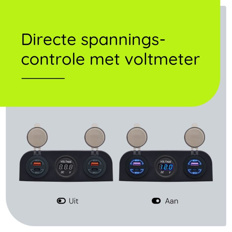 - Veiligheid: De ingebouwde voltmeter houdt de accuspanning van je auto in de gaten.