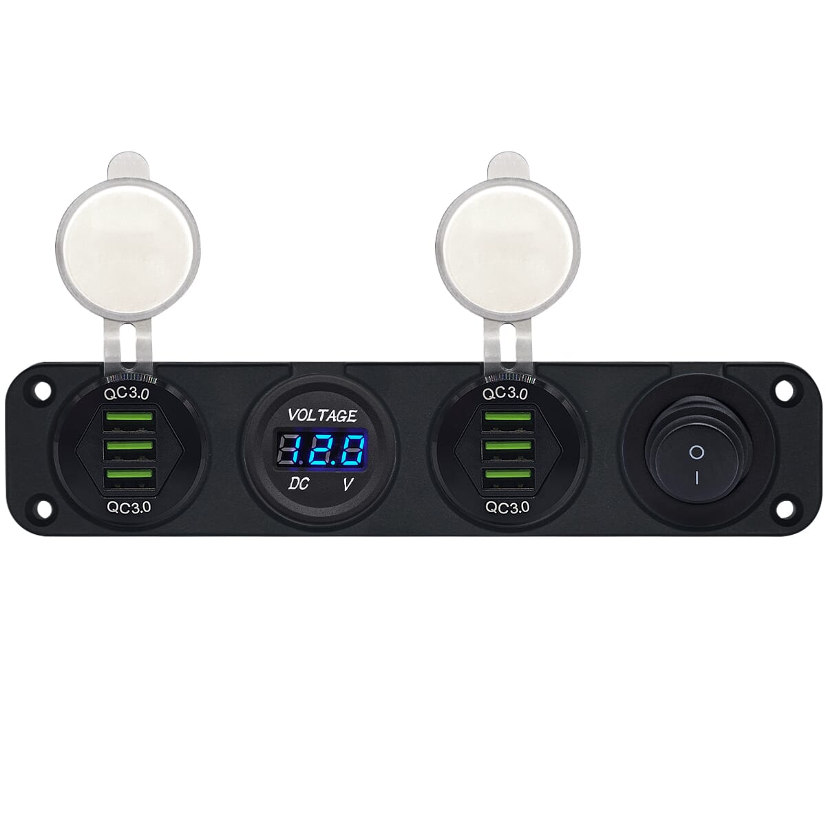 ProRide 12V USB Autolader 6 Poorten – QC3.0 – Voltmeter en Schakelaar – Viervoudig inbouw