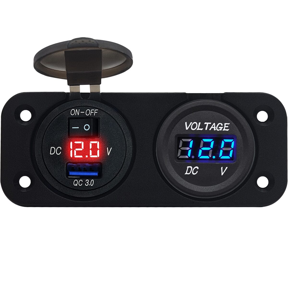 ProRide 12V USB Autolader Inbouw met Schakelaar/Voltmeter – 5V/2.4A – Tweevoudig inbouw paneel – Rood
