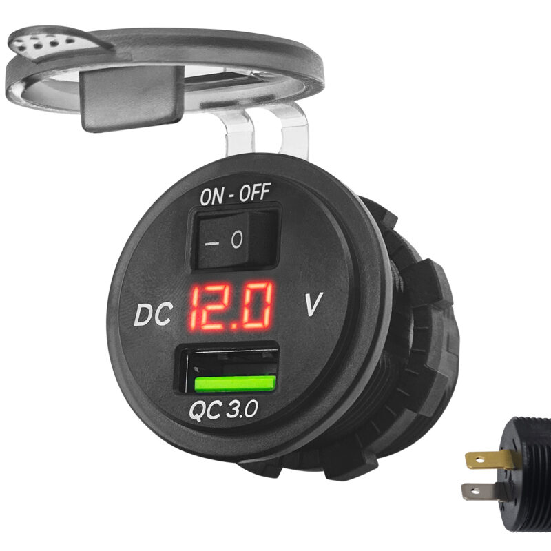 De ingebouwde voltmeter geeft je real-time informatie over de spanning van je voertuig, terwijl de schakelaar je de mogelijkheid biedt om de lader aan en uit te zetten. Dit zorgt voor extra veiligheid en voorkomt onnodig stroomverbruik.