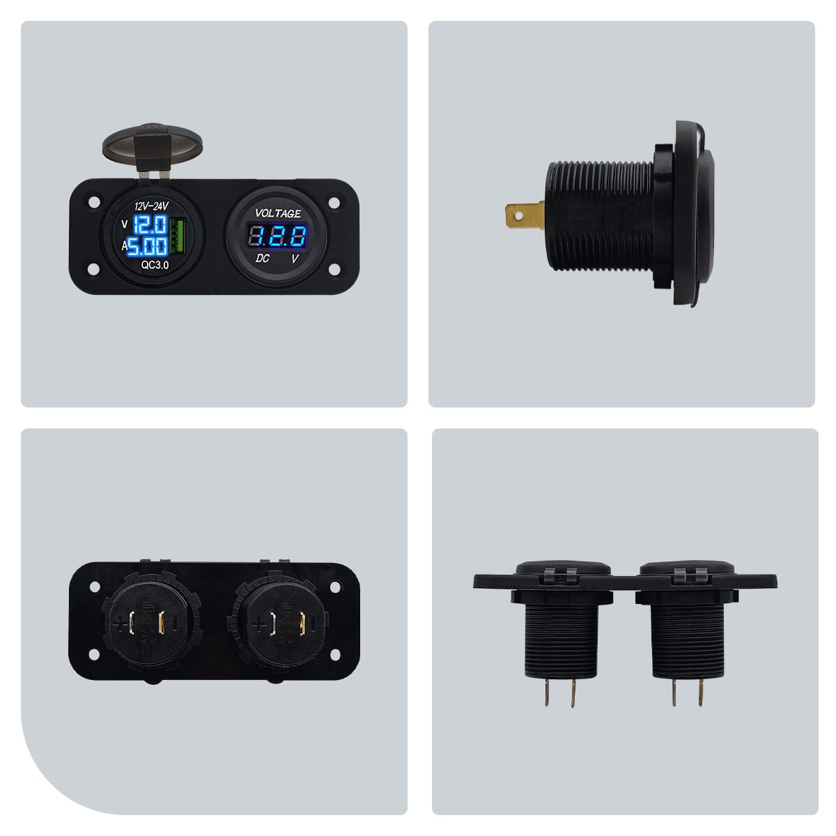 Blijf altijd opgeladen en veilig onderweg met de ProRide 12V USB Autolader Inbouw met Voltmeter/Ampèremeter – QC3.0 – Tweevoudig inbouw paneel!