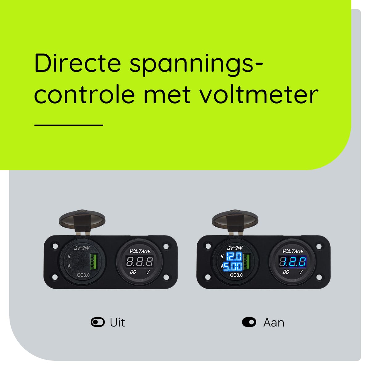 - Ingebouwde meters: Voltmeter en ampèremeter voor realtime monitoring van je accu.