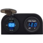 ProRide 12V USB Autolader Opbouw met Schakelaar – 5V/2.4A – Tweevoudig opbouw met Voltmeter – Blauw