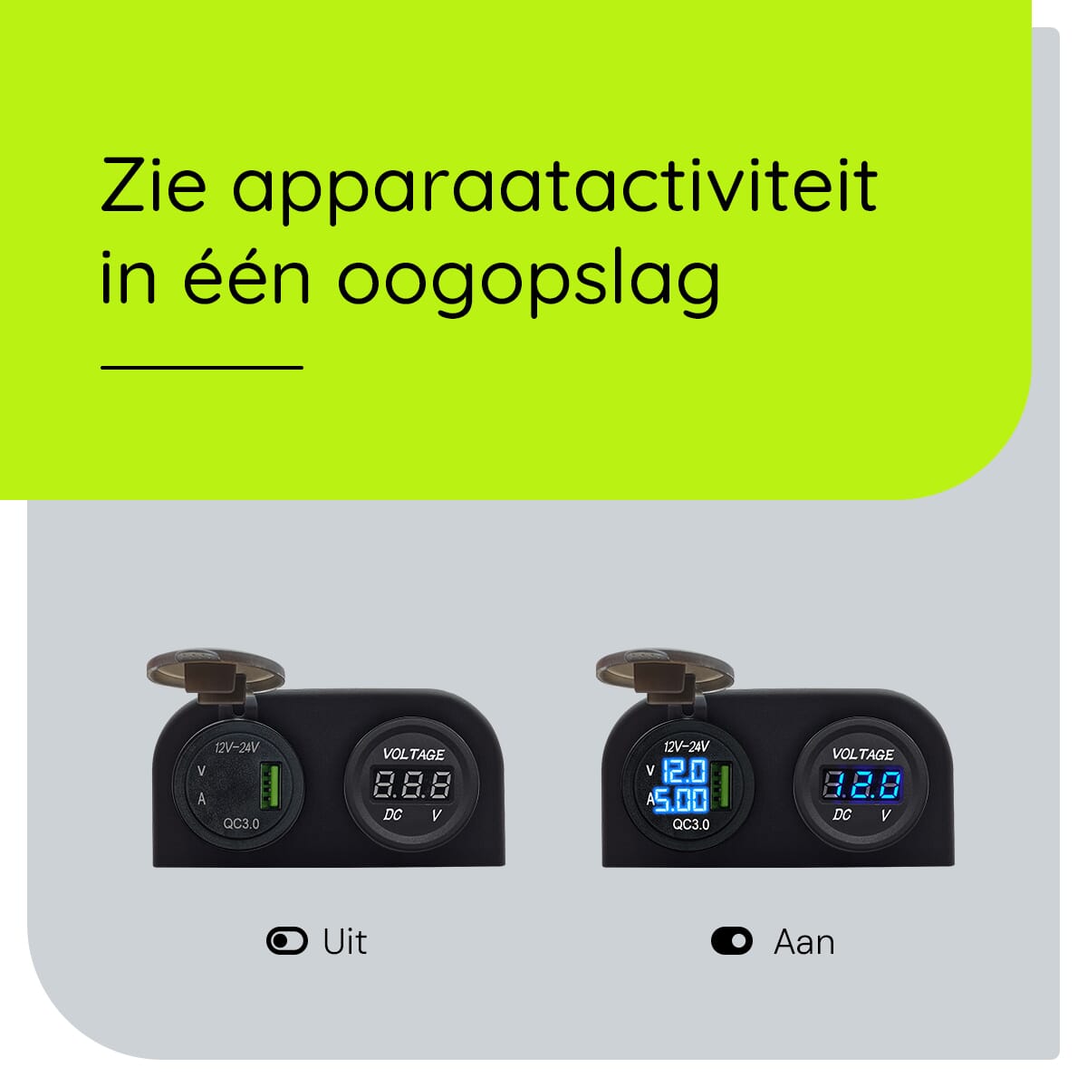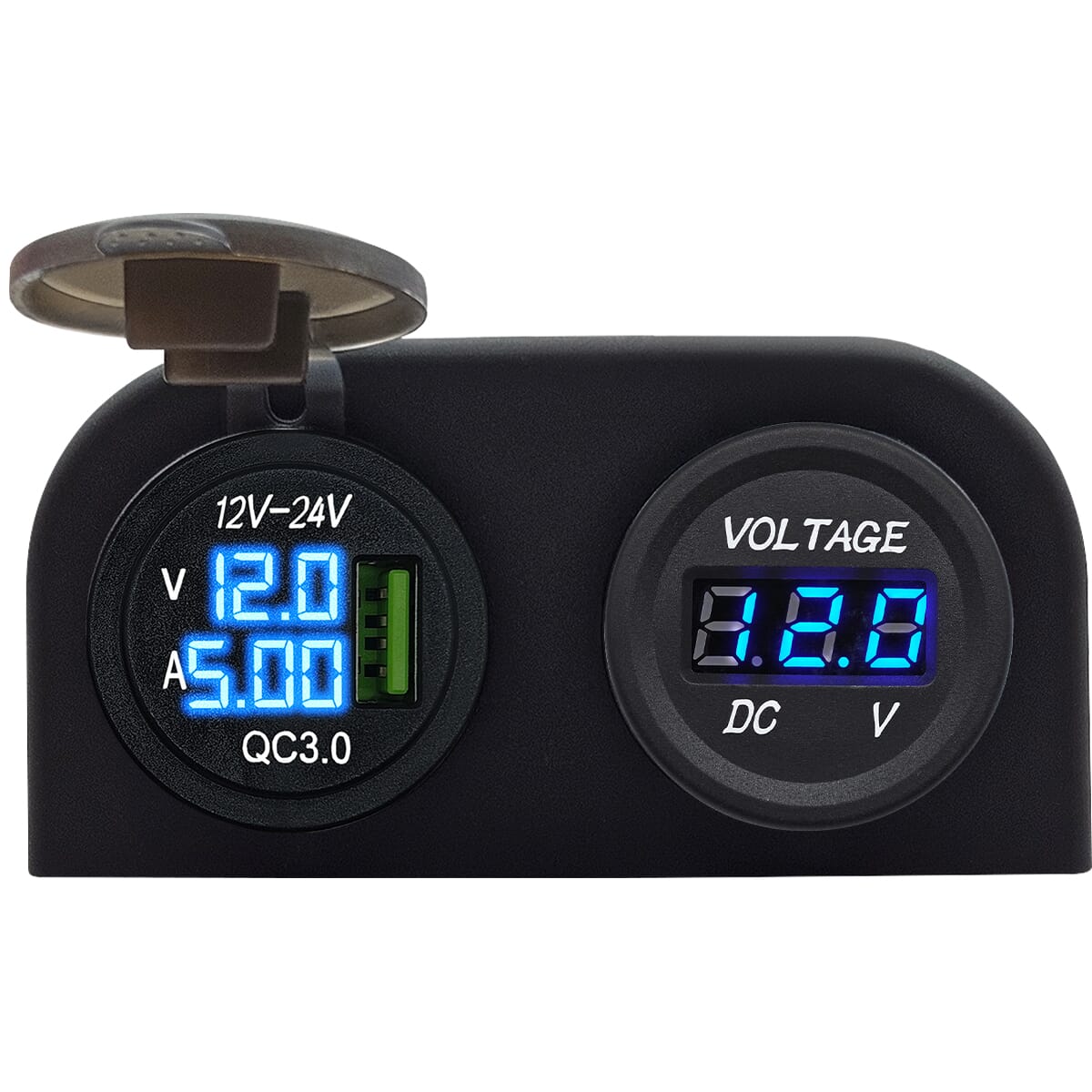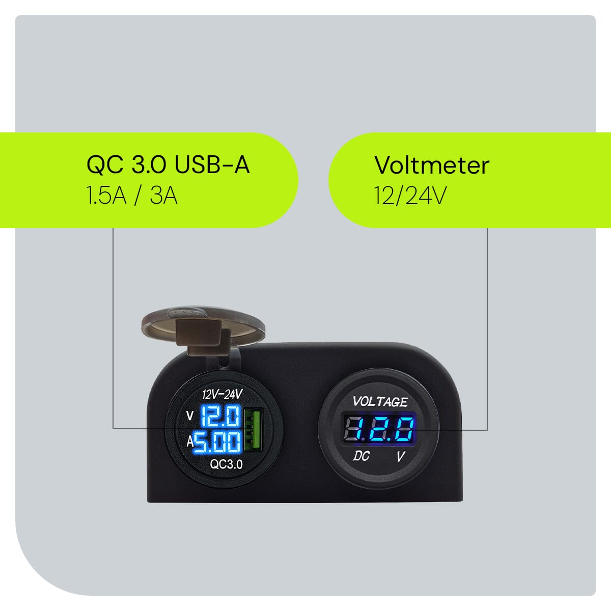 ProRide 12V USB Autolader Opbouw met Voltmeter/Ampèremeter – QC3.0 – Tweevoudig opbouw