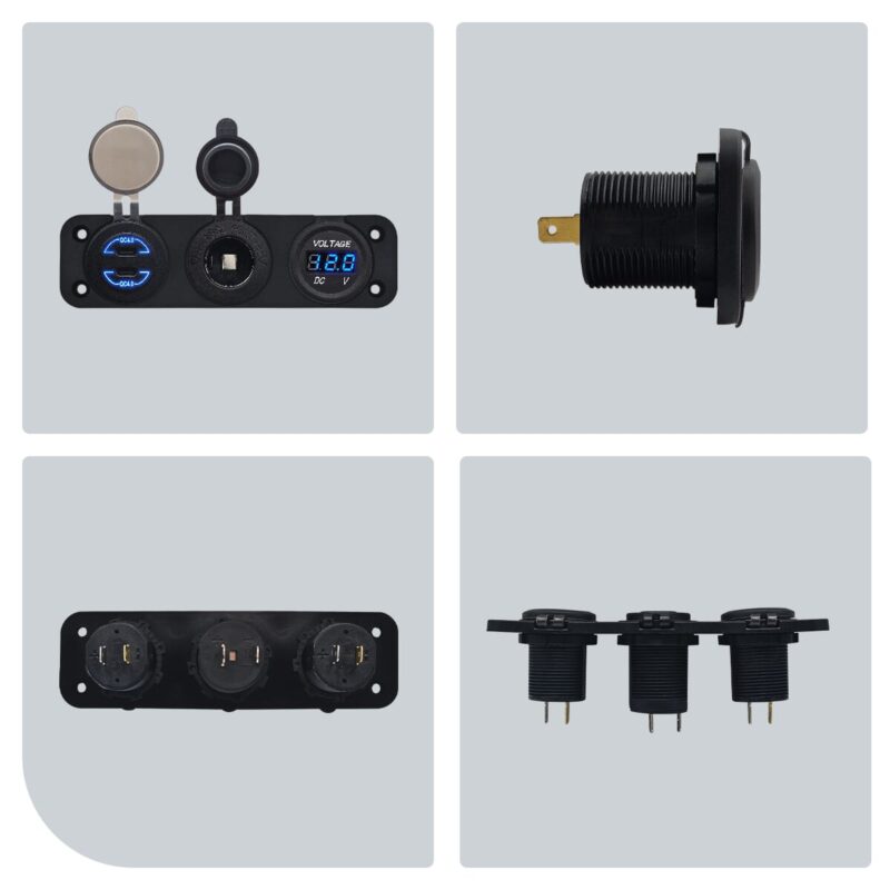 Dankzij het drievoudige inbouwontwerp is dit stopcontact eenvoudig te installeren en integreert het naadloos met de interieurs van de meeste voertuigen. Volg de meegeleverde installatie-instructies voor een snelle en veilige montage.