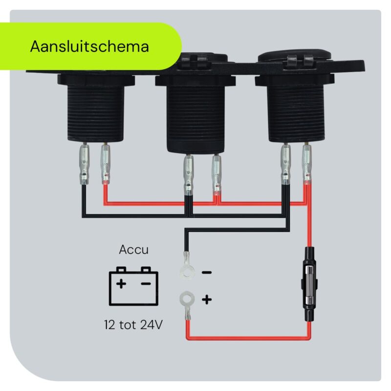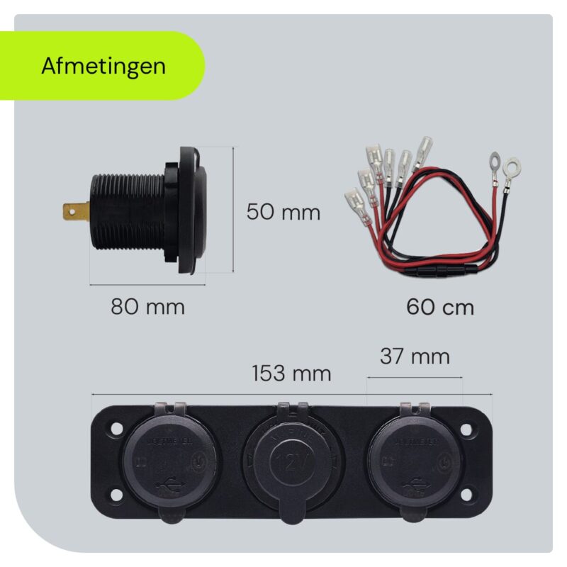 - Extra Functies: Voltmeter, Schakelaar, 12V/24V Sigarettenplug