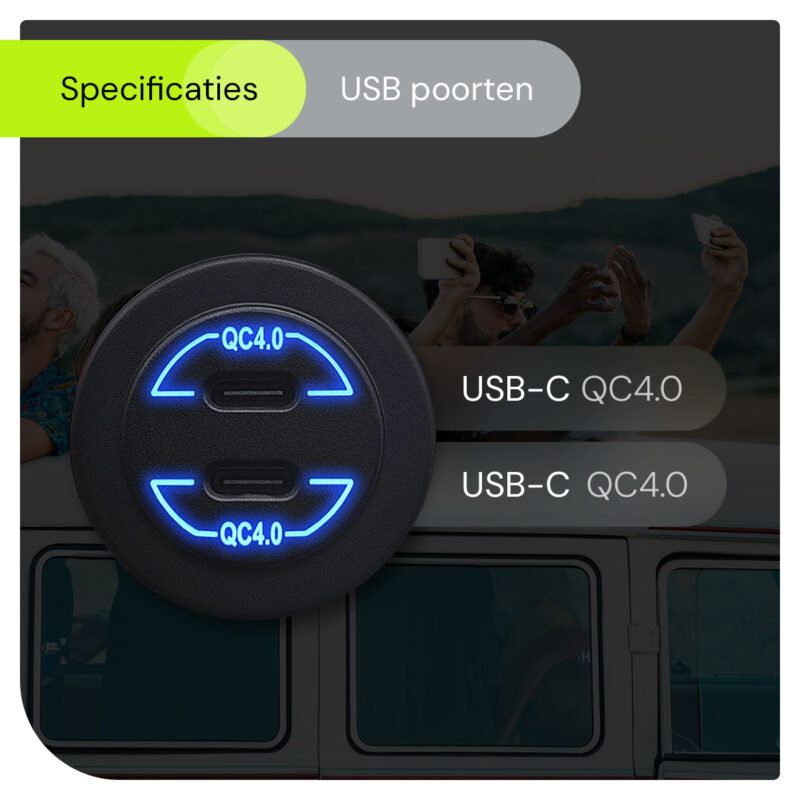 - Snelle oplaadtijd: Dankzij de QC4.0 technologie laad je je apparaten tot 4 keer sneller op dan met een standaard lader.