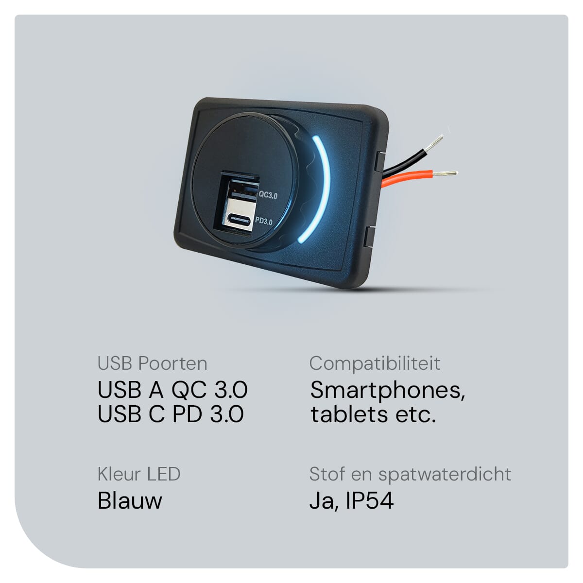 ProRide 12V USB C Autolader 2 Poorten Opbouw met Afdekklepje