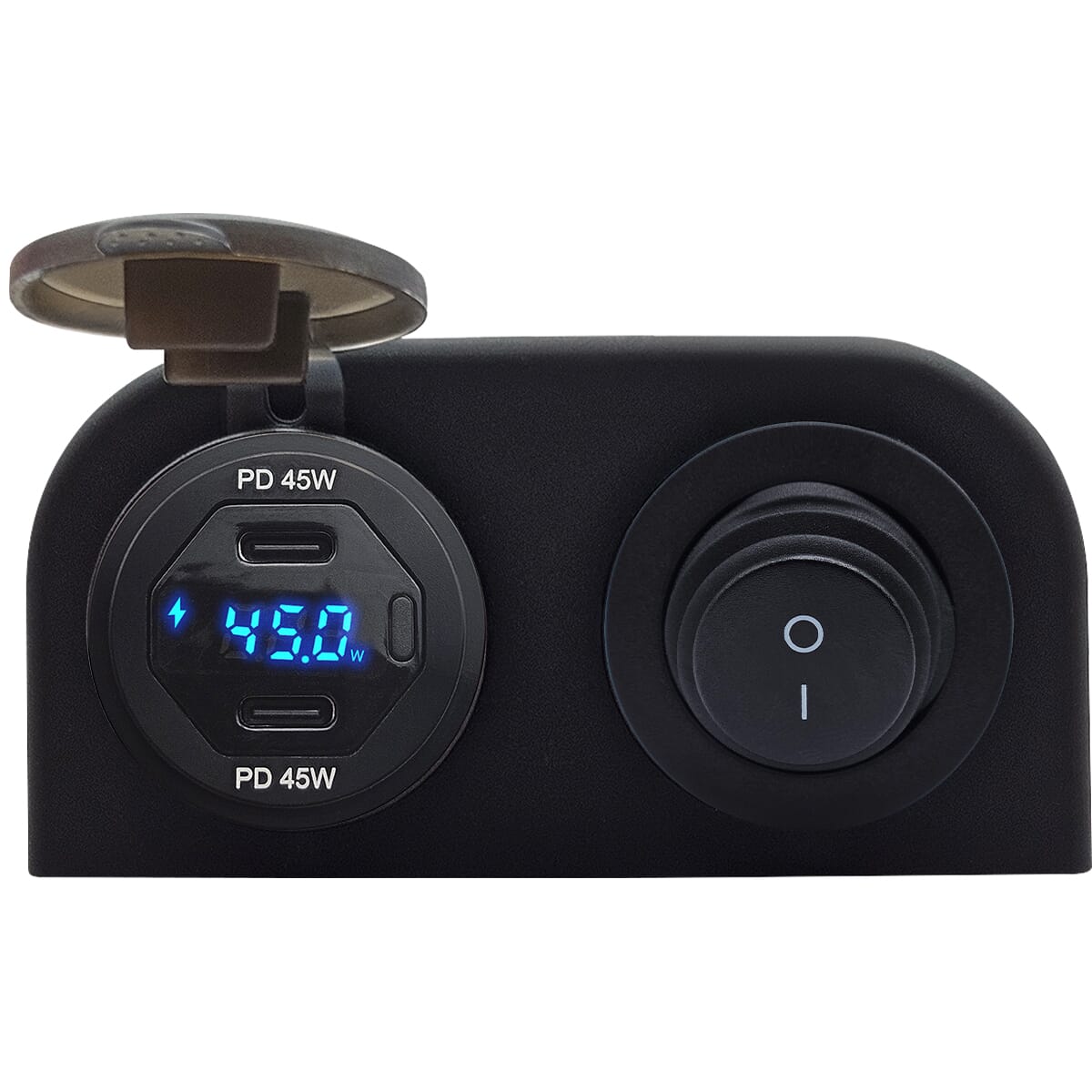 ProRide 12V USB C Autolader 2 Poorten Opbouw met Wattagemeter – 45W/QC3.0 – Tweevoudig opbouw – Blauw