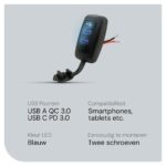 Dankzij de QC3.0 snellaadtechnologie kun je erop vertrouwen dat je apparaten in een mum van tijd weer volledig opgeladen zijn. Dit is vooral handig tijdens lange ritten wanneer je meerdere apparaten tegelijk wilt gebruiken.